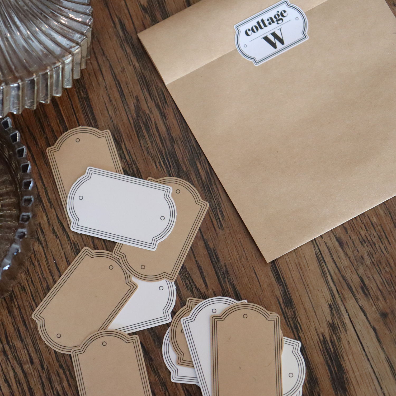 영국의 클래식한 집 번호판을 모티브로 디자인된 라벨 스티커로 다양한 용도로 사용할 수 있습니다. 서랍 한쪽에 붙여 열지 않아도 들어있는 물건을 알 수 있는 목적으로 사용하거나, 선물 포장을 할 때 받는 사람의 이름을 구분하는 용도로 사용할 수도 있죠. 부치는 물건이나 포장에 맞춰 화이트 스티커 혹은 크라프트 스티커를 활용해보세요.