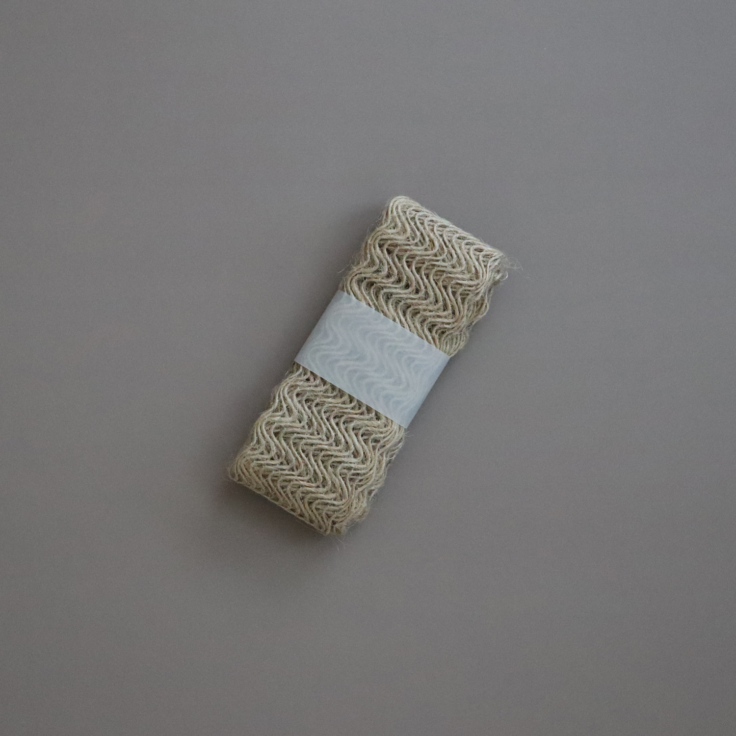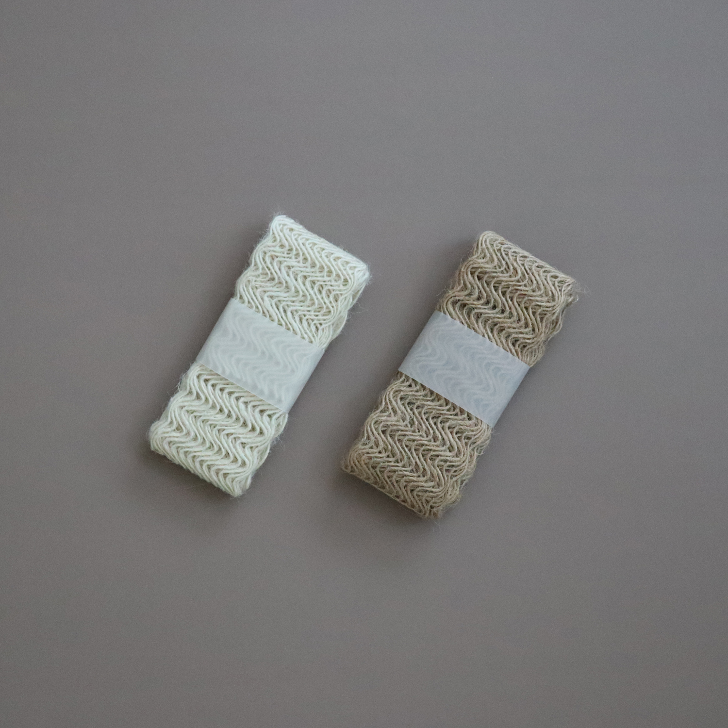 구불구불한 패턴이 독특한 헴프 소재 리본입니다. 폭은 약 4.5cm, 총길이는 2m 정도로 선물 포장, 장식 등 다양하게 활용할 수 있습니다.